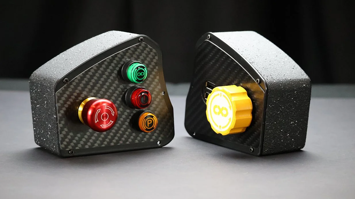 CARBON FIBRE AND ALCANTARA - USES SOME OF THE ACTUAL SWITCHGEAR FOUND ON THE REAL GT3 WHEEL